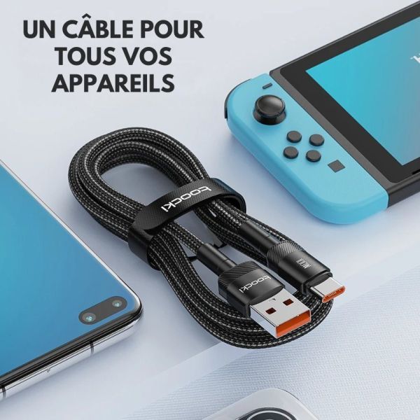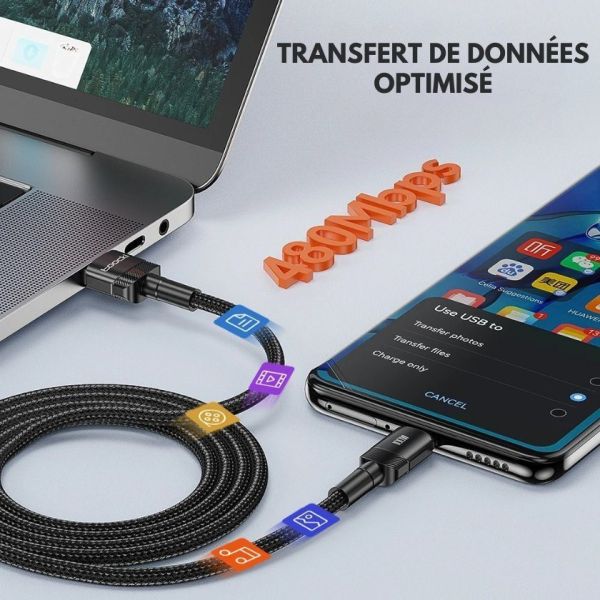 ✅ Durabilité renforcée : Câble tressé en nylon ultra-résistant et connecteurs en alliage d'aluminium, conçus pour éviter l'usure et la casse.