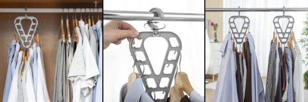 Ces organisateurs de cintres permettent d'augmenter la capacité de stockage de vêtements. Les cintres peuvent être placés sous la forme d'une cascade avec une séparation minimale, favorisant ainsi le stockage d'un plus grand nombre de vêtements occupant un espace plus petit.