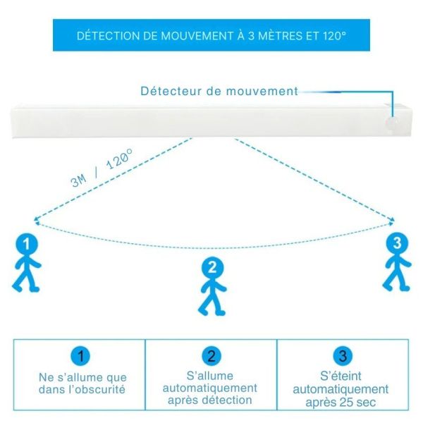 ✅ Détection de mouvement intelligente – Capteur infrarouge qui détecte vos mouvements dans un rayon de 3 à 5 mètres et s'éteint automatiquement après 20 à 30 secondes.