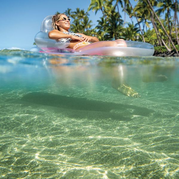 Ce modèle ne mise pas seulement sur l'esthétique ou le confort, il est aussi ultra fonctionnel. Chaque matelas est équipé d'un porte-gobelet intégré, parfait pour garder votre boisson fraîche à portée de main sans quitter votre oasis flottante. Et pour celles et ceux qui aiment garder le contact avec l'eau, une ouverture au niveau des pieds permet de les laisser tremper tout en se relaxant.