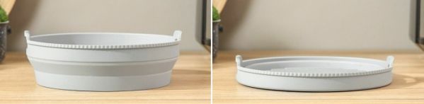 - Pliable, adaptable : Grâce à sa conception pliable, il peut être utilisé comme panier ou plateau, en fonction de la quantité ou du type d'aliments. Une fois plié, il prend très peu de place pour un rangement facile.
