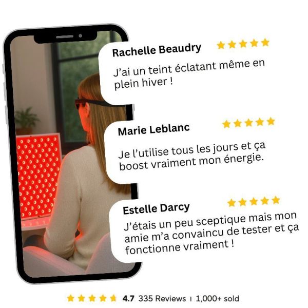 Grâce à ses 113 LED 660 nm (rouge profond) + 112 LED 850 nm (infrarouge), LumiSkin™ combine deux longueurs d'onde essentielles :