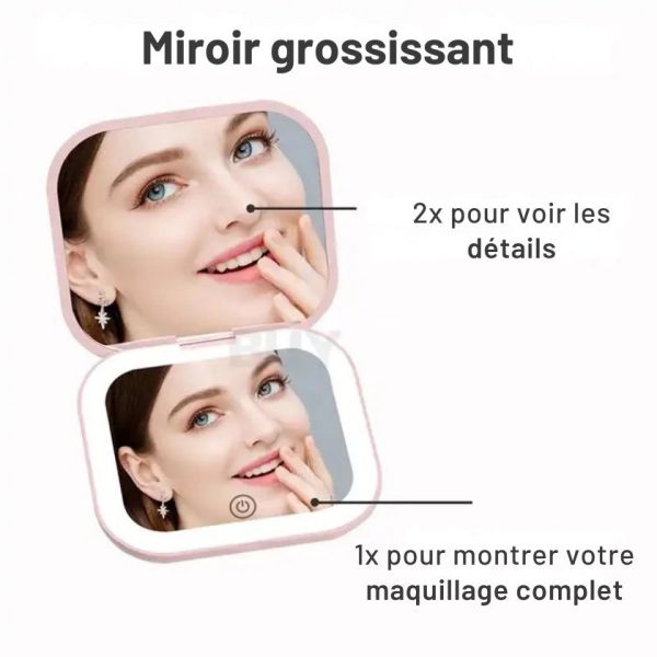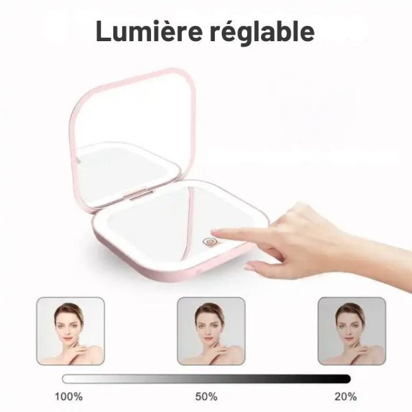 Un miroir pratique et lumineux, idéal pour vos retouches beauté en toute mobilité !