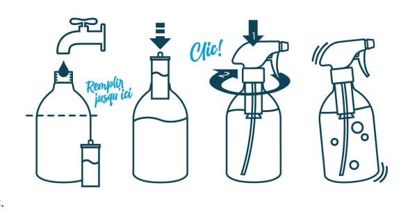 - Bouteille avec pulvérisateur + 6 recharges