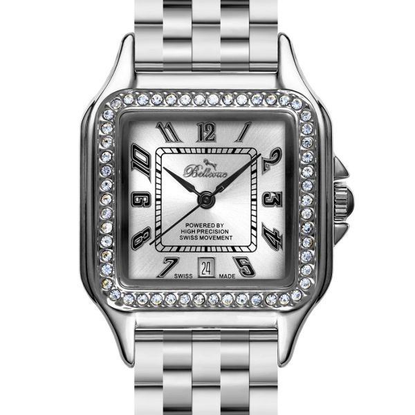 La montre Bellevue ELEGANCIA incarne parfaitement la sophistication classique associée à une touche de modernité. Avec son design travaillé et son esthétique harmonieuse, elle apporte une allure raffinée à chaque tenue. Son boîtier carré orné de cristaux étincelants lui confère une dimension bijou irrésistible, idéale pour celles qui aiment allier style et finesse.
