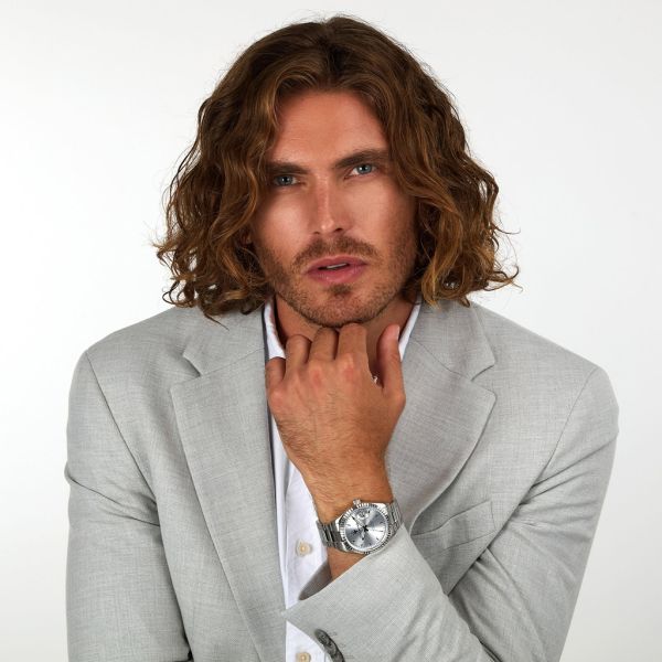 Conçue avec un boîtier en acier inoxydable de 43 mm, cette montre offre une présence affirmée au poignet sans compromettre le confort. Sa finition soignée, associée à un bracelet en acier argenté avec boucle déployante, garantit un maintien sécurisé et un style intemporel. La lunette travaillée et les index fins renforcent son aspect premium, tandis que le verre minéral protège efficacement le cadran contre les aléas du quotidien.