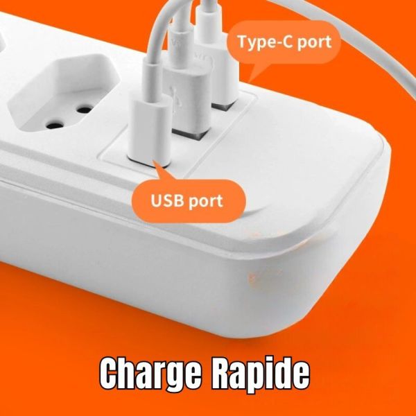 Super multiprise ! Je peux brancher tous mes appareils sans problème. Les ports USB sont rapides et le câble long est vraiment pratique pour mon coin salon
