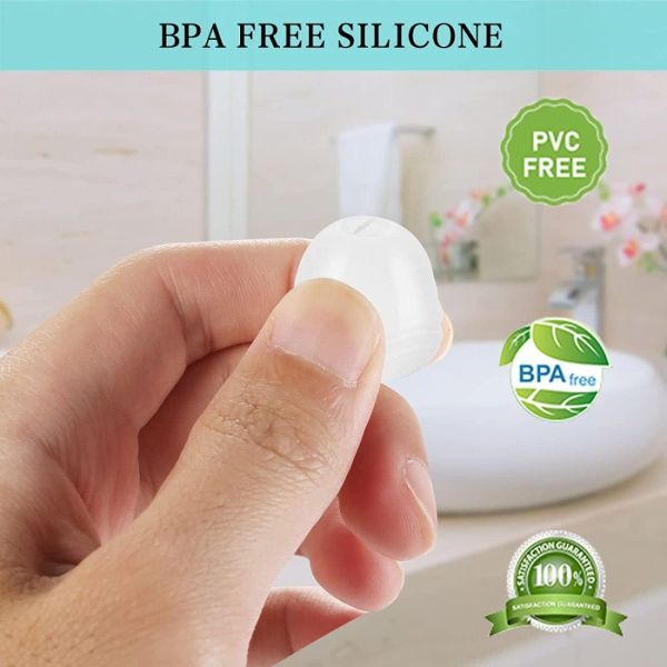 Chaque pack comprend deux bouchons de dentifrice : un blanc et un bleu. Ces bouchons sont fabriqués en silicone de qualité alimentaire, sans BPA, qui n'absorbe ni les odeurs ni les goûts. Ces bouchons distributeurs de dentifrice peuvent être lavés, rincés et réutilisés