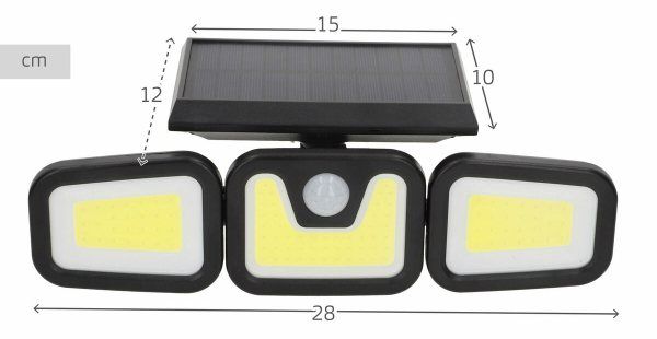 Sehr hell (350 lm) und deckt dank 270° drei Lichtbereiche ab. Der Bewegungsmelder reagiert zuverlässig bis etwa 5 Meter. Keine Kabel – einfach solar !
