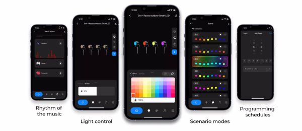 Connectés en Wi-Fi, ces spots se pilotent facilement via l'application Tuya Smart, disponible sur Android et iOS. Vous pouvez ainsi allumer, éteindre, ajuster la luminosité ou encore changer la couleur de vos lumières à distance. Grâce à la compatibilité avec les assistants vocaux tels que Google Assistant, Alexa et Siri, il suffit de la voix pour transformer l'atmosphère de votre extérieur.