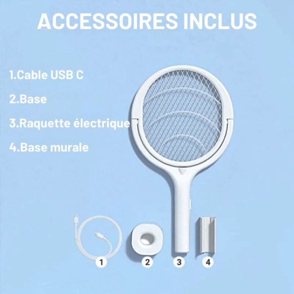 Découvrez notre raquette électrique à charge rapide conçue pour éliminer efficacement les moustiques et autres insectes indésirables.