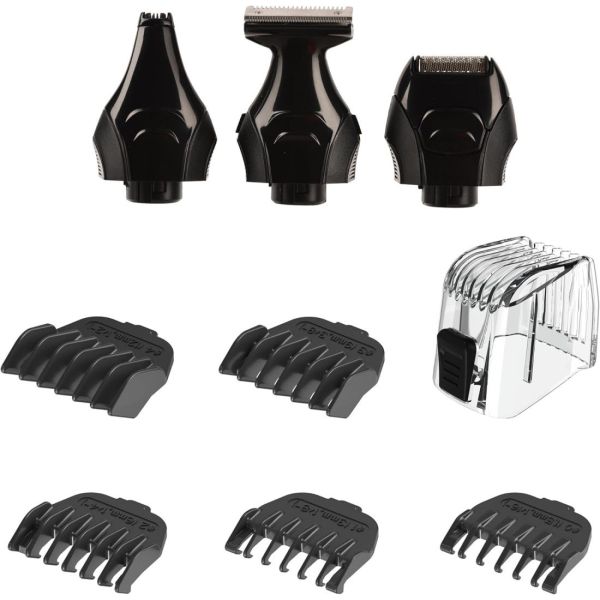 Mais ce n'est pas tout ! La Tondeuse à Barbe Multifonction 10 accessoires REMINGTON est également équipée d'une tondeuse linéaire pour les poils de nez et d'oreilles, ainsi que d'un mini accessoire de rasage pour un rasage précis (0,2 mm). Le peigne de fixation réglable (2-16 mm) et les 5 peignes de fixation (1,5, 3, 6, 9, 12 mm) vous offrent une grande flexibilité pour adapter votre look à vos besoins.