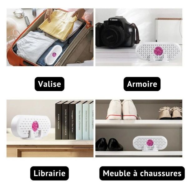 L'humidité s'installe discrètement dans les placards, les armoires à chaussures ou les petits espaces… et avec elle viennent les mauvaises odeurs et la sensation de linge humide.