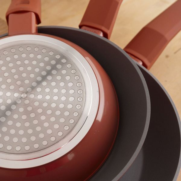 Le Set de 3 Poêles Bidasoa Zocco apporte une solution polyvalente pour toutes les cuisines. Avec ses trois tailles pratiques (Ø 18, 22 et 26 cm), cet ensemble s'adapte à chaque préparation, qu'il s'agisse d'un simple œuf au plat, d'un sauté de légumes ou d'un plat plus généreux pour toute la famille. Leur design moderne aux tons terre cuite et gris apporte une touche élégante et chaleureuse à votre cuisine.