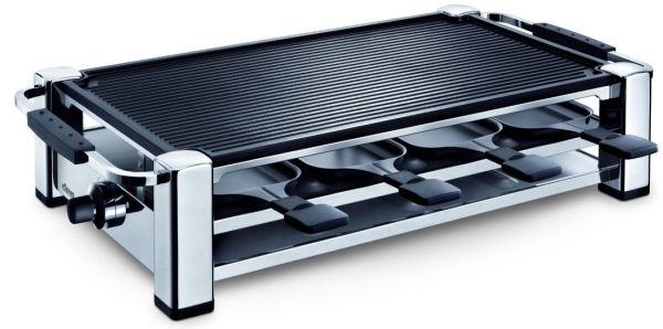 - Raclette-Gril pour 8 personnes avec un design élégant en acier chromé.