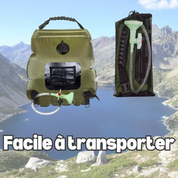 Profitez de la commodité d'une douche chaude partout avec notre sac de douche solaire !