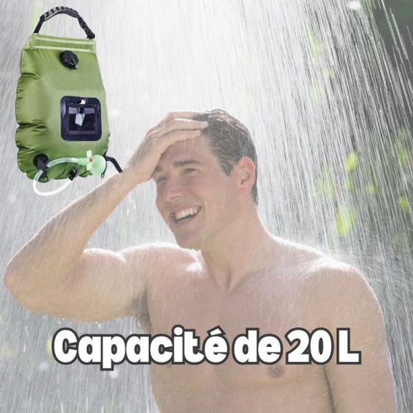 Avec une capacité de 20 l, ce sac de douche permet plusieurs douches avant de nécessiter un remplissage.