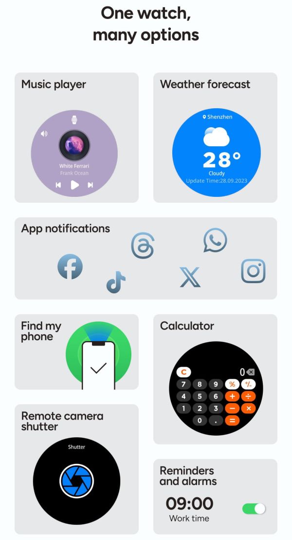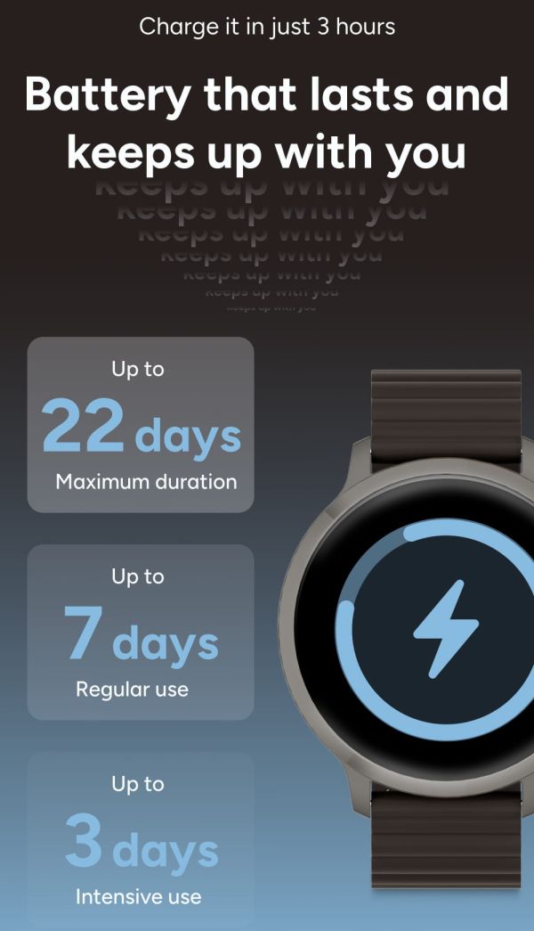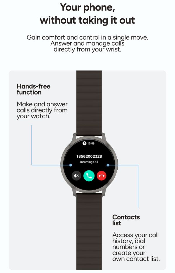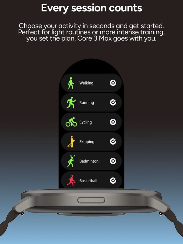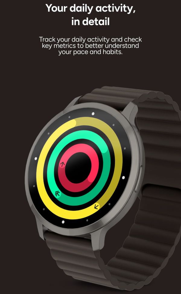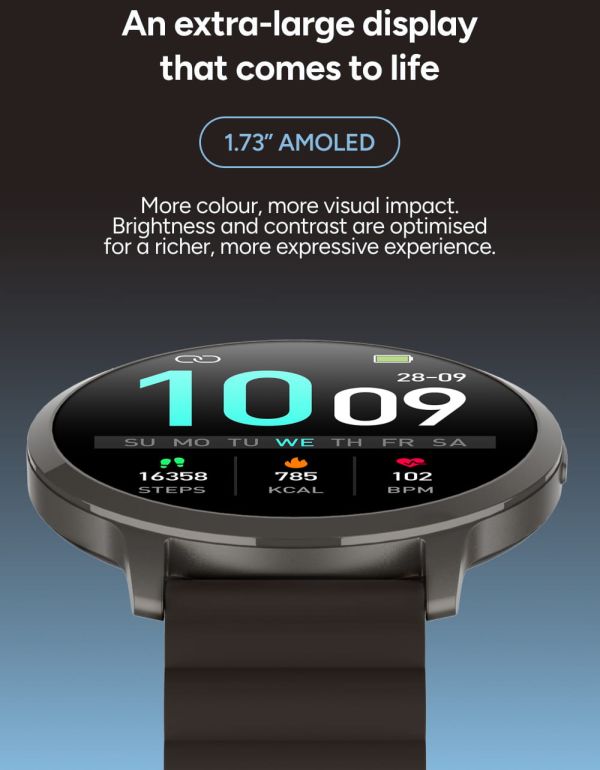 Au cœur de cette smartwatch se trouve un écran AMOLED de 1,73 pouces, véritable atout pour une lisibilité optimale. Grâce à sa résolution élevée de 466 × 466 pixels, chaque information apparaît avec une netteté remarquable, des couleurs éclatantes et des noirs profonds. L'effet “tout écran" améliore considérablement le confort de lecture, que ce soit pour consulter l'heure, suivre vos données ou lire vos notifications. Chaque interaction devient plus fluide, plus intuitive et agréable, même en extérieur.