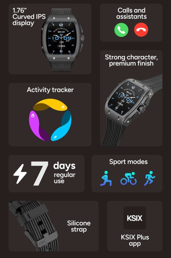 Grâce à l'application KSIX Plus, la Smartwatch Hero s'intègre parfaitement à votre écosystème numérique. Compatible avec Android® et iOS®, elle synchronise facilement vos données avec des plateformes comme Apple Health, Google Health ou Strava. Vous gardez ainsi un contrôle complet sur votre activité, votre progression et votre bien-être, le tout depuis une interface intuitive et accessible.