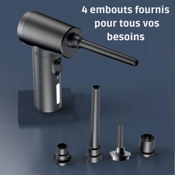 Ce souffleur d'air sans fil avec une vitesse de 50000 RPM permet de nettoyer en profondeur la poussière microscopique de vos ordinateurs, claviers, caméras, et bien plus encore.
