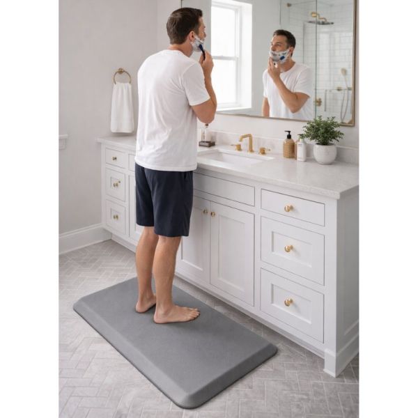 Sa mousse ergonomique de 12 mm d'épaisseur offre un soutien confortable et stable tout en favorisant une meilleure circulation. Son revêtement PVC imperméable et antidérapant garantit sécurité et durabilité, même dans les zones humides comme la cuisine ou la salle de bain.