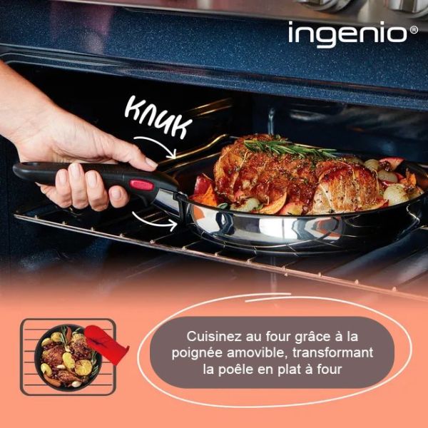 Tefal Ingenio Lot de 3 Poêles + Poignée Amovible