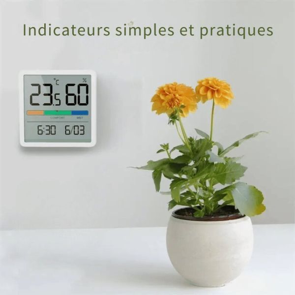 Ce thermomètre hygromètre numérique compact permet de mesurer la température et l'humidité à l'intérieur de votre maison ou bureau.