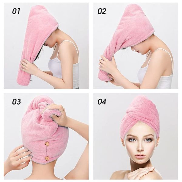 - Praticité et facilité d'utilisation avec un bouton pour attacher la serviette sur votre tête.