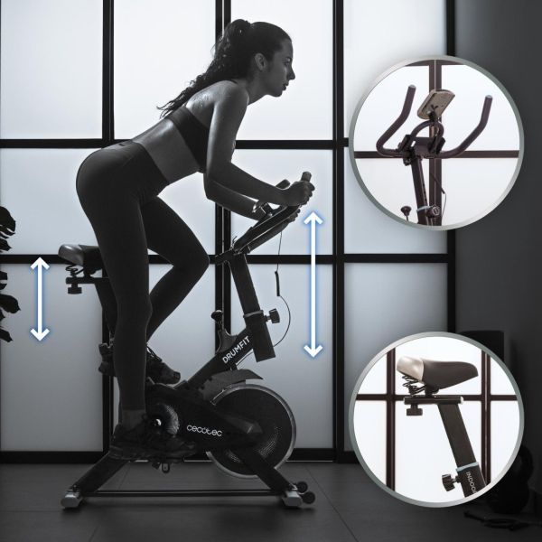 Équipé d'un volant d'inertie de 6 kg, le DrumFit Indoor offre un pédalage fluide et naturel, permettant de reproduire les sensations d'un entraînement en salle. Sa selle réglable verticalement et horizontalement s'adapte à toutes les morphologies, garantissant un confort optimal même lors des séances prolongées.