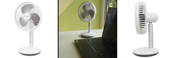 Kompakter und leiser Tischventilator. Ideal für den Schreibtisch oder das Schlafzimmer. Er bietet eine angenehme Kühlung ohne viel Lärm