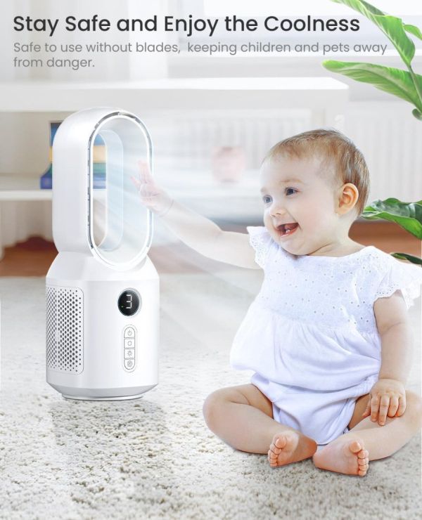 Avec son boîtier en plastique blanc associé à des touches de métal, ce ventilateur présente un look moderne et épuré. Ses dimensions compactes (12,6 × 34,2 × 12,6 cm) et son poids plume de 0,85 kg en font un compagnon de choix, facile à déplacer d'une pièce à l'autre ou à glisser dans un sac pour vos sorties.